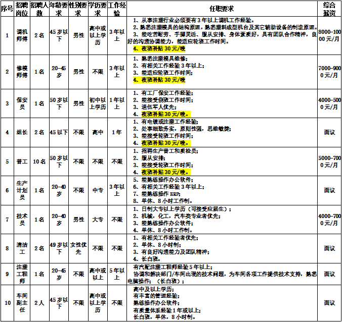 清遠(yuǎn)市金鐘汽車零部件有限公司急聘如下職位: